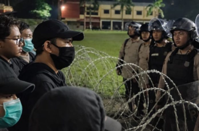 Terkait aksi massa yang terjadi, di depan Markas Polda DIY pada Selasa (24/2) malam.